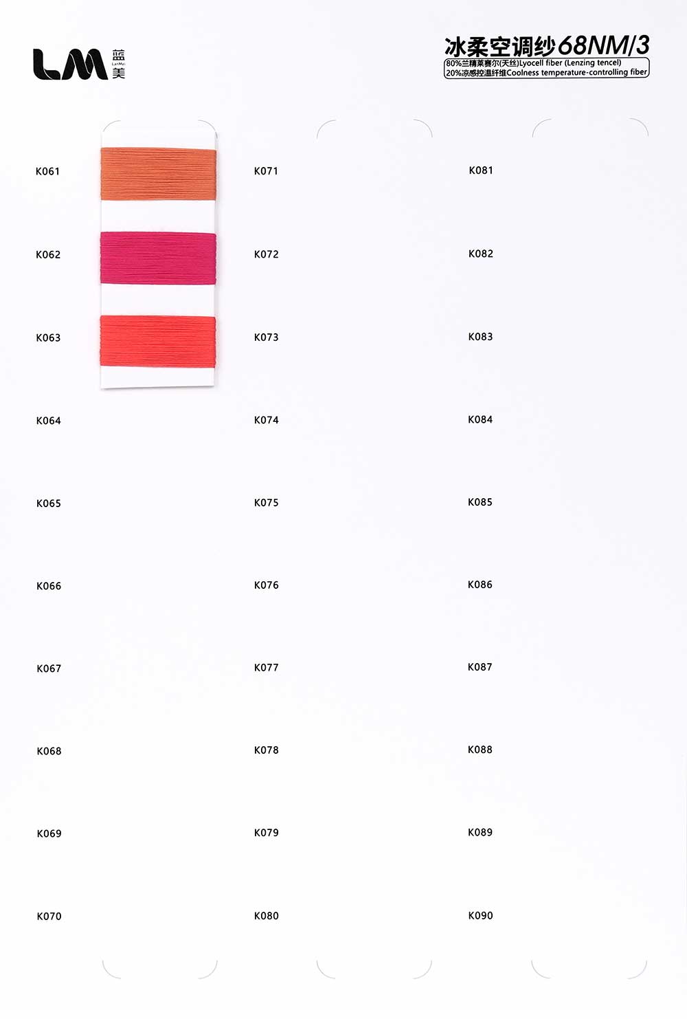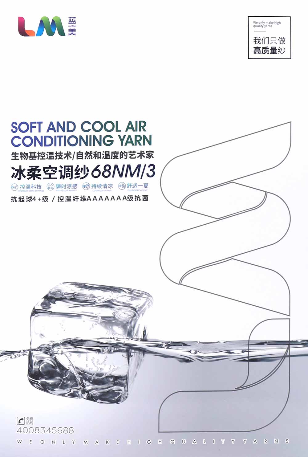 20%凉感控温纤维Coolness temperature-controlling fiber 80%兰精莱赛尔(天丝)Lyocell fiber(Lenzing tencel)