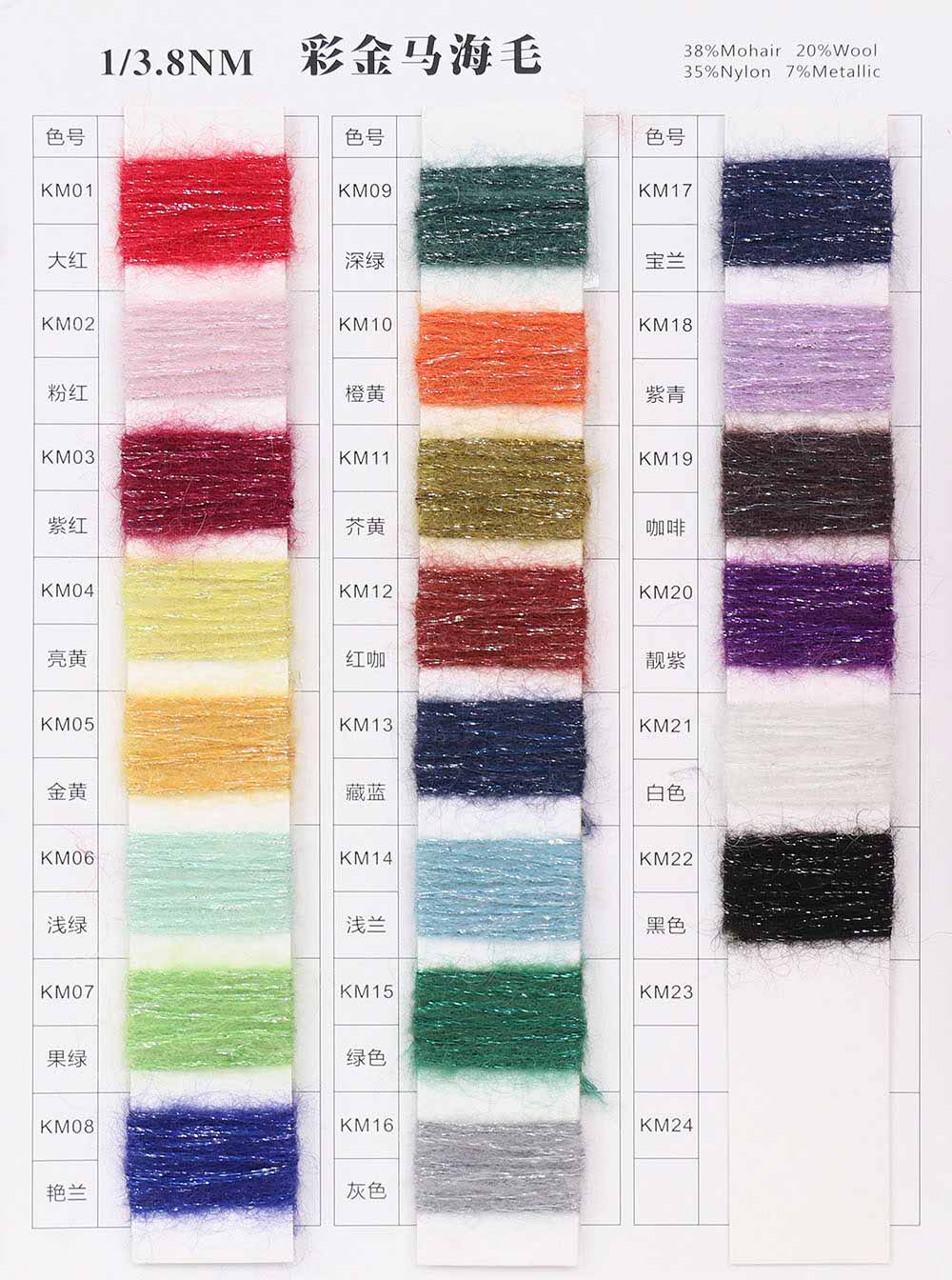 38%Mohair马海 35%Nylon尼龙 20%Wool羊毛 7%Metallic金银丝