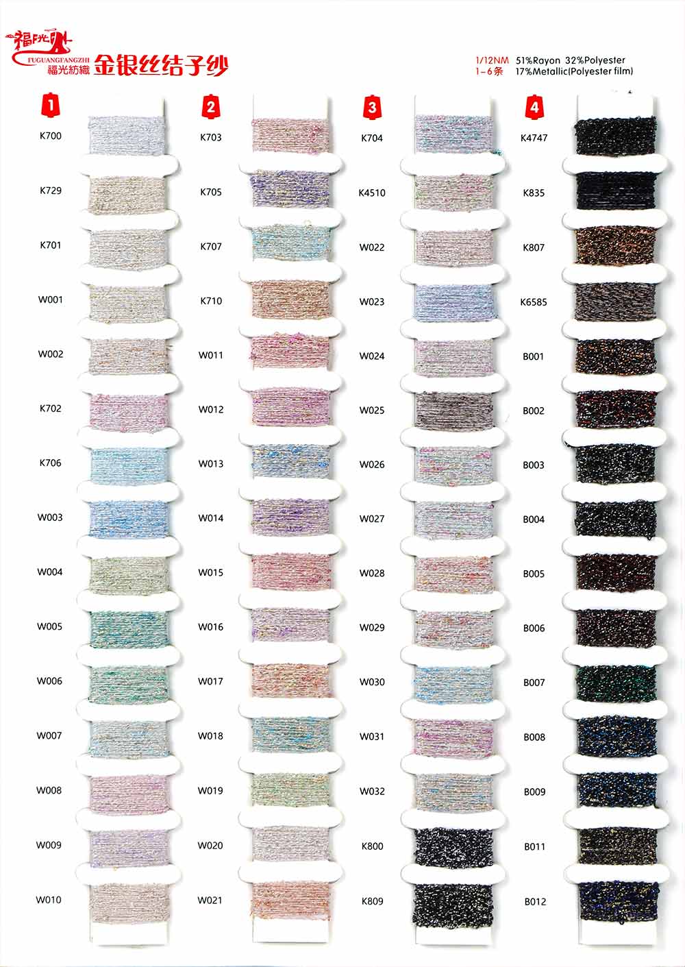 51%人造丝Rayon 32%涤纶Polyester 17%金属丝Metallic (Polyester film)