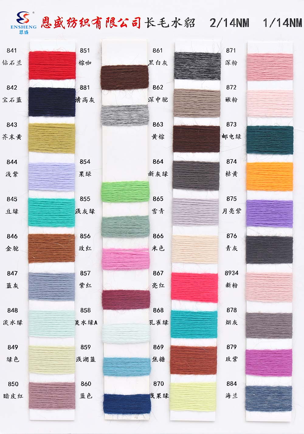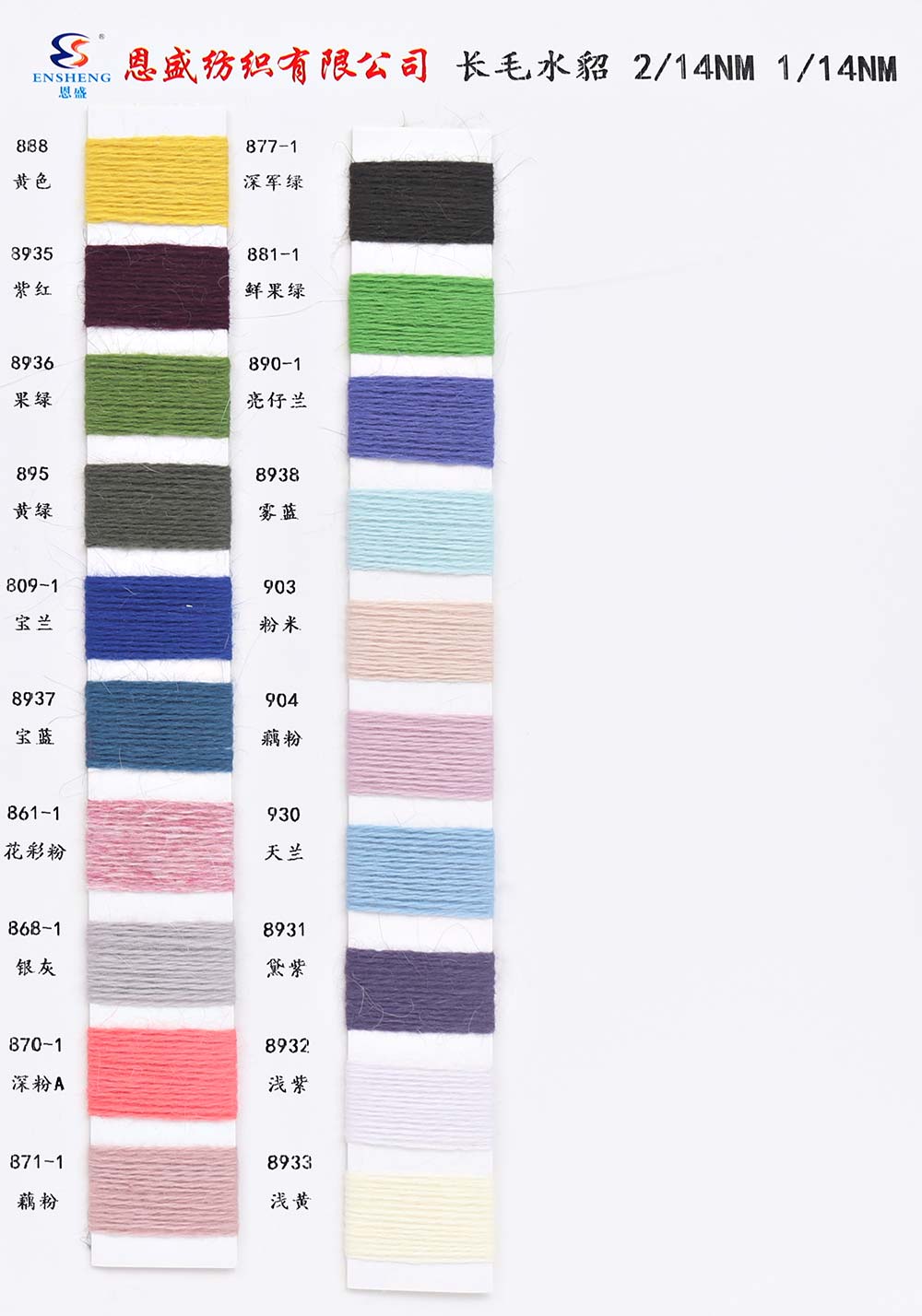 有色丝光棉,有色冰爽丝,有色仿亚麻,有色双曲,有色天丝,有色兔绒/高弹包芯纱,有色莫代尔包芯纱,有色安哥拉北极绒,有色羊毛纤弹绒,银丝亲肤绒,有色安迪绒,有色仿棉,半精梳棉纱,有色羊毛混纺,有色鹿毛绒,1.3公分不掉毛仿貂