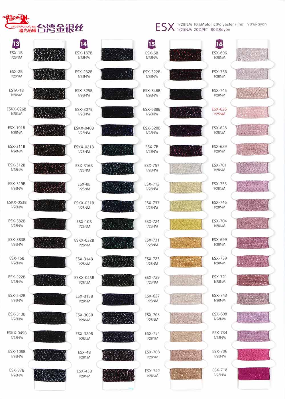 16%金银线Metallic(Polyester Film) 84%粘胶Rayon