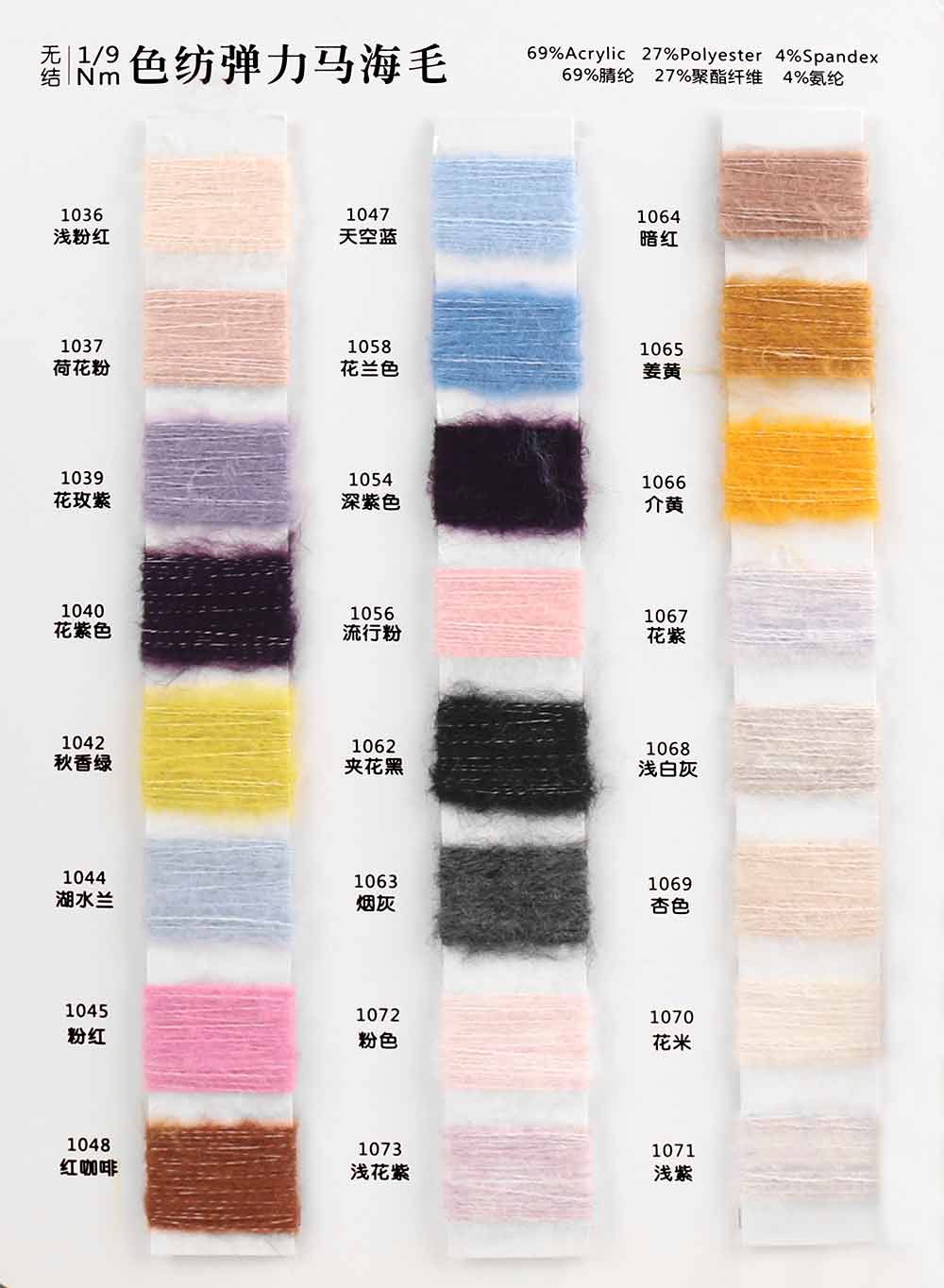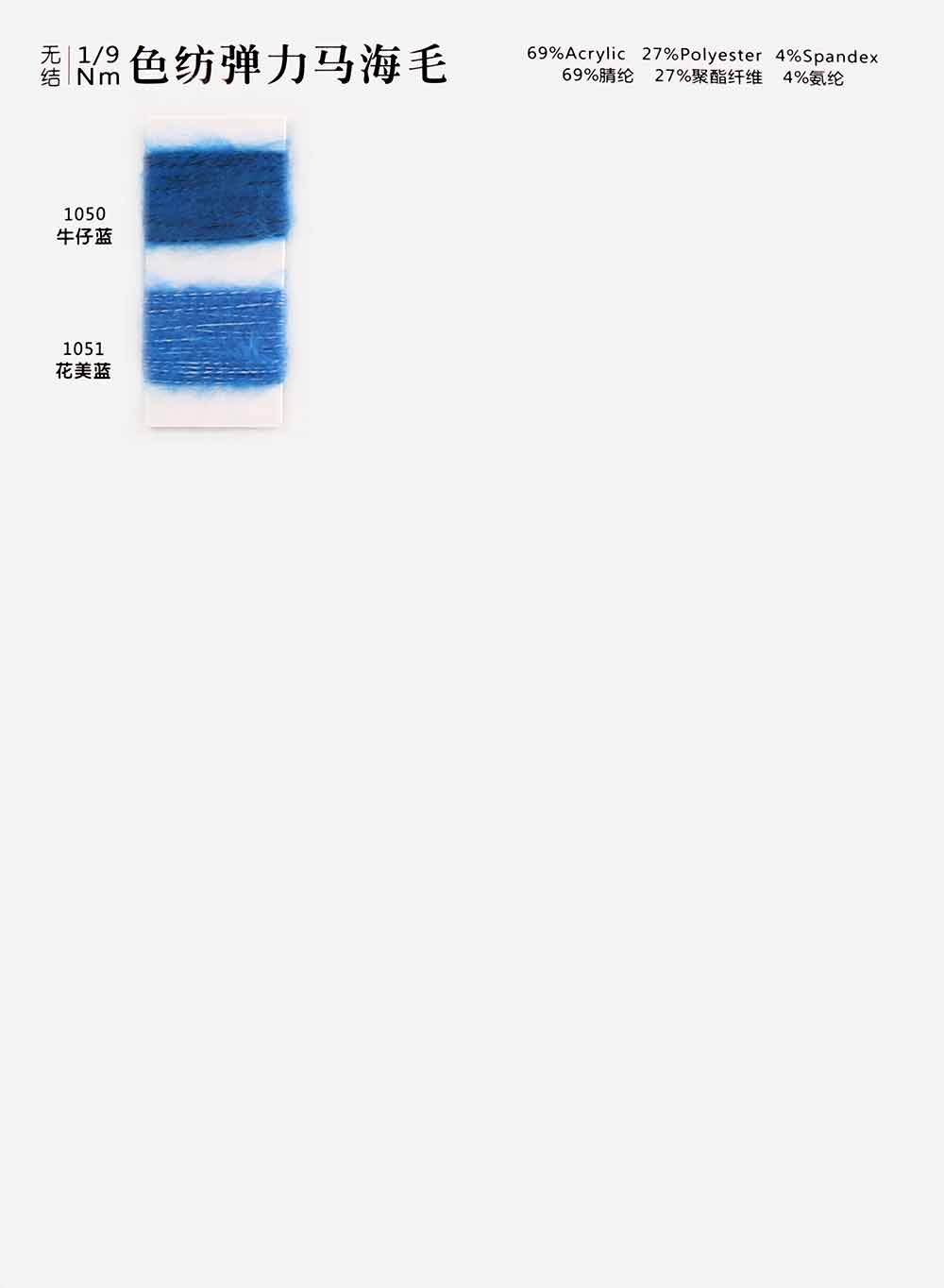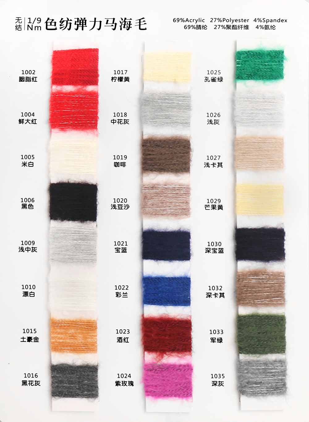 69%腈纶Acrylic 27%聚酯纤维Polyester 4%氨纶Spandex